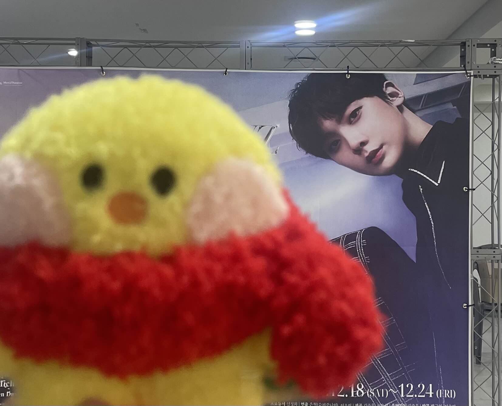 대기장소에서 산하의 뱃지를 사고 조금 기다리다 입장 안내를 듣고 들어가는데 아무리 봐도 인형이 산하랑 꼭 닮아서 신났다. 노오란 병아리 💛 너가 너무 귀여워 😘